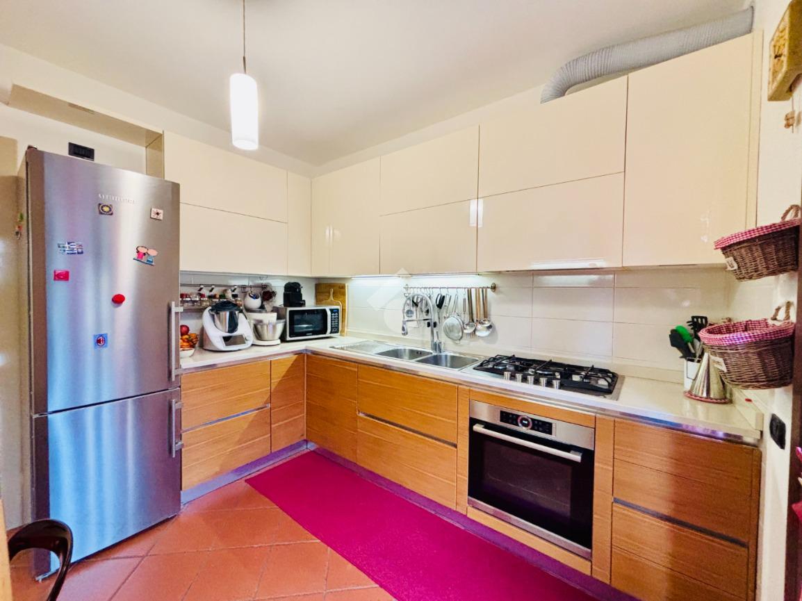 Salendo, la zona giorno si apre su un soggiorno luminoso con area salotto e zona pranzo, pensato per vivere appieno la quotidianità familiare. La cucina è abitabile e gode dell’accesso diretto al giardino privato, uno spazio esterno riservato ideale per pranzi all’aperto e momenti di tranquillità.