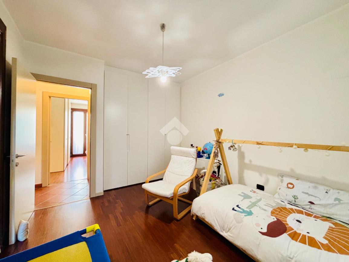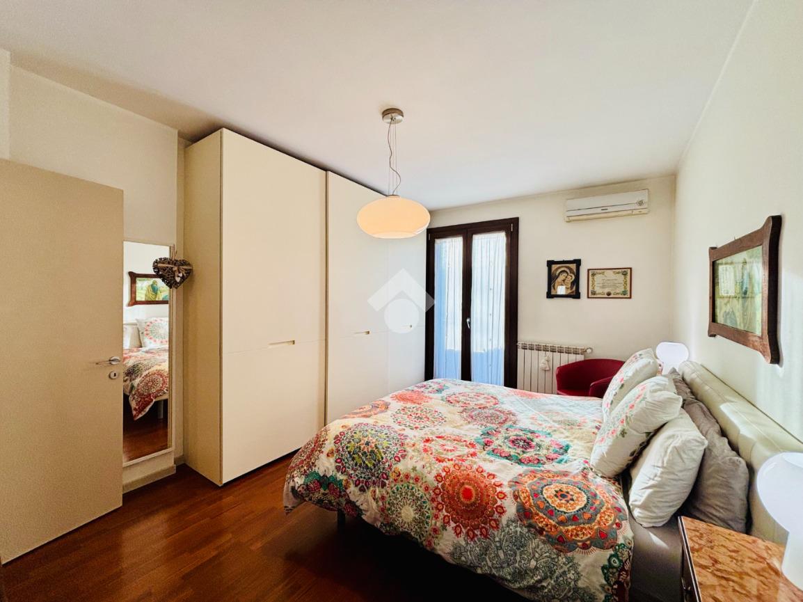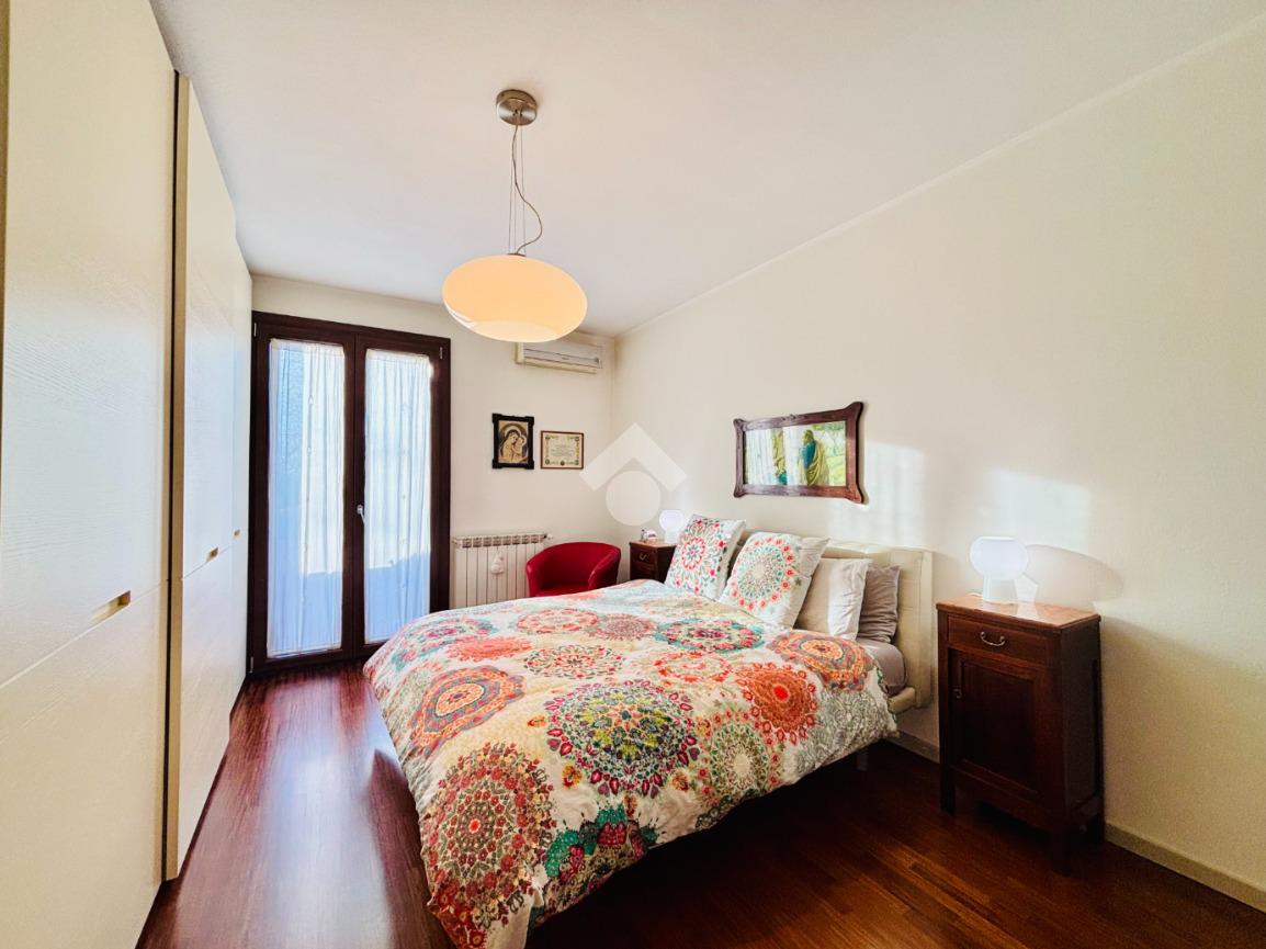 La zona notte ospita due camere matrimoniali, entrambe di generose dimensioni, una arricchita da balcone e l’altra da un terrazzino. Il bagno finestrato, curato nei dettagli, è dotato sia di doccia che di vasca idromassaggio, oltre a una pratica area lavanderia.